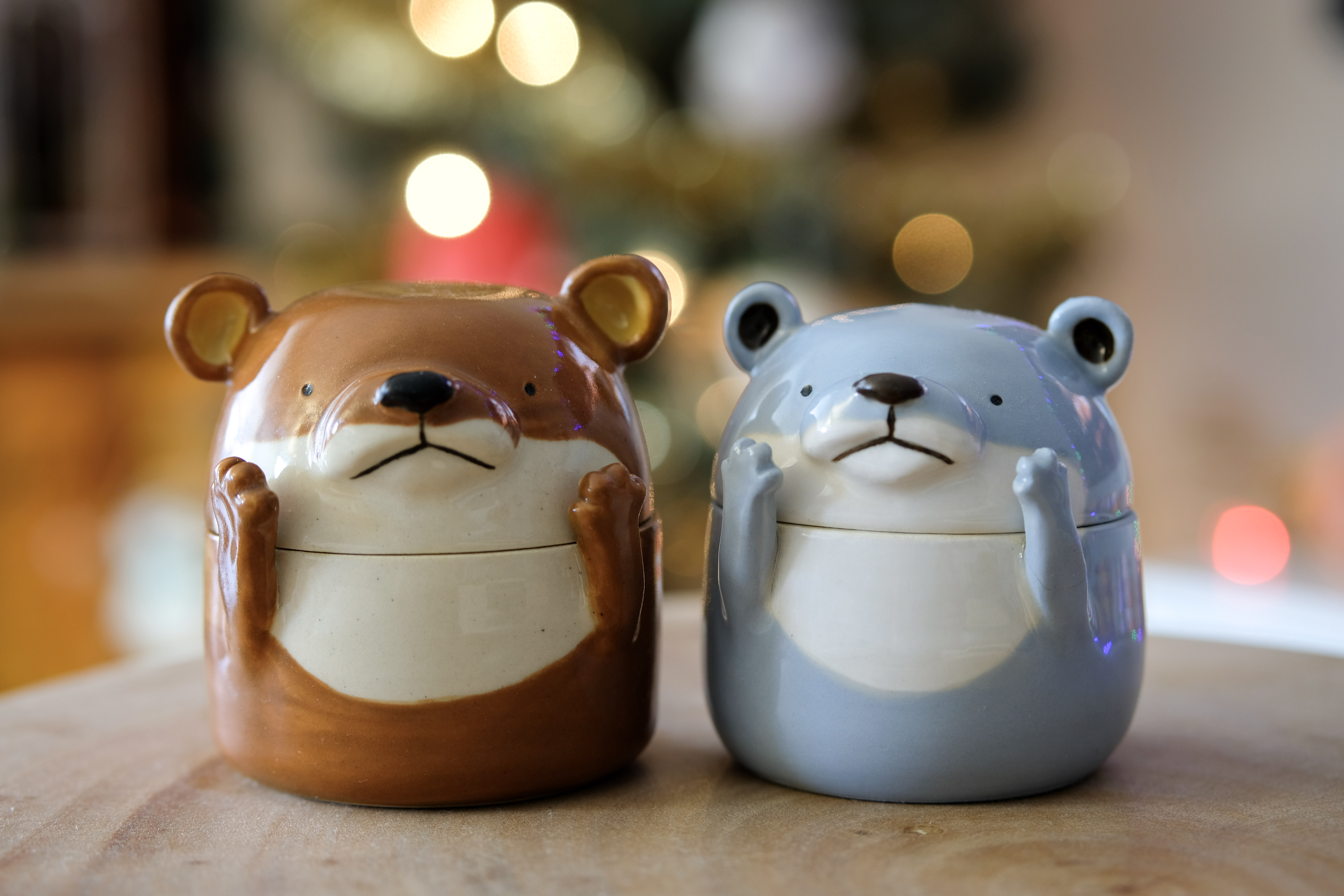 Luckily there were no broken limbs on this one and the lid separated cleanly with some gently taps. This otter sits next to the grey otter on my night stand to hold hair ties and memory cards.